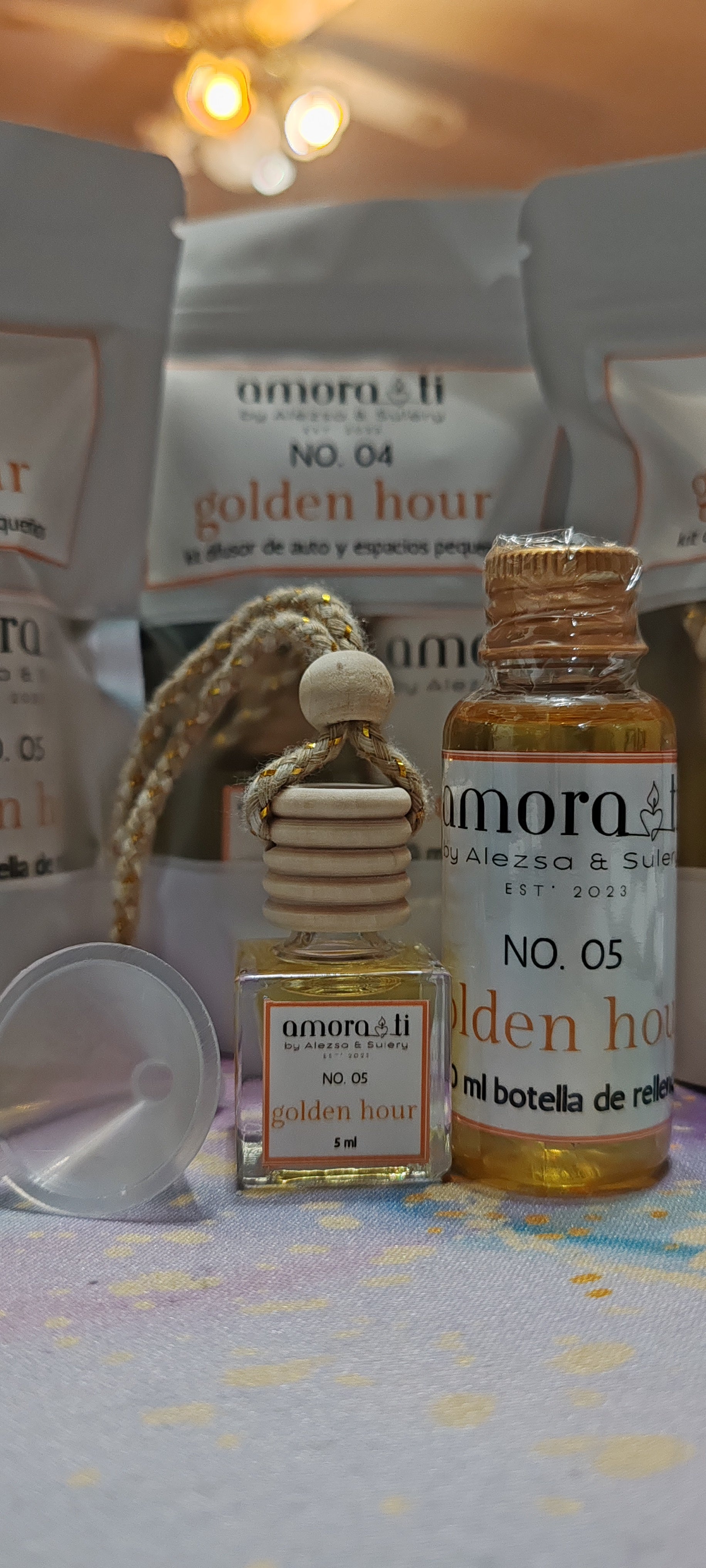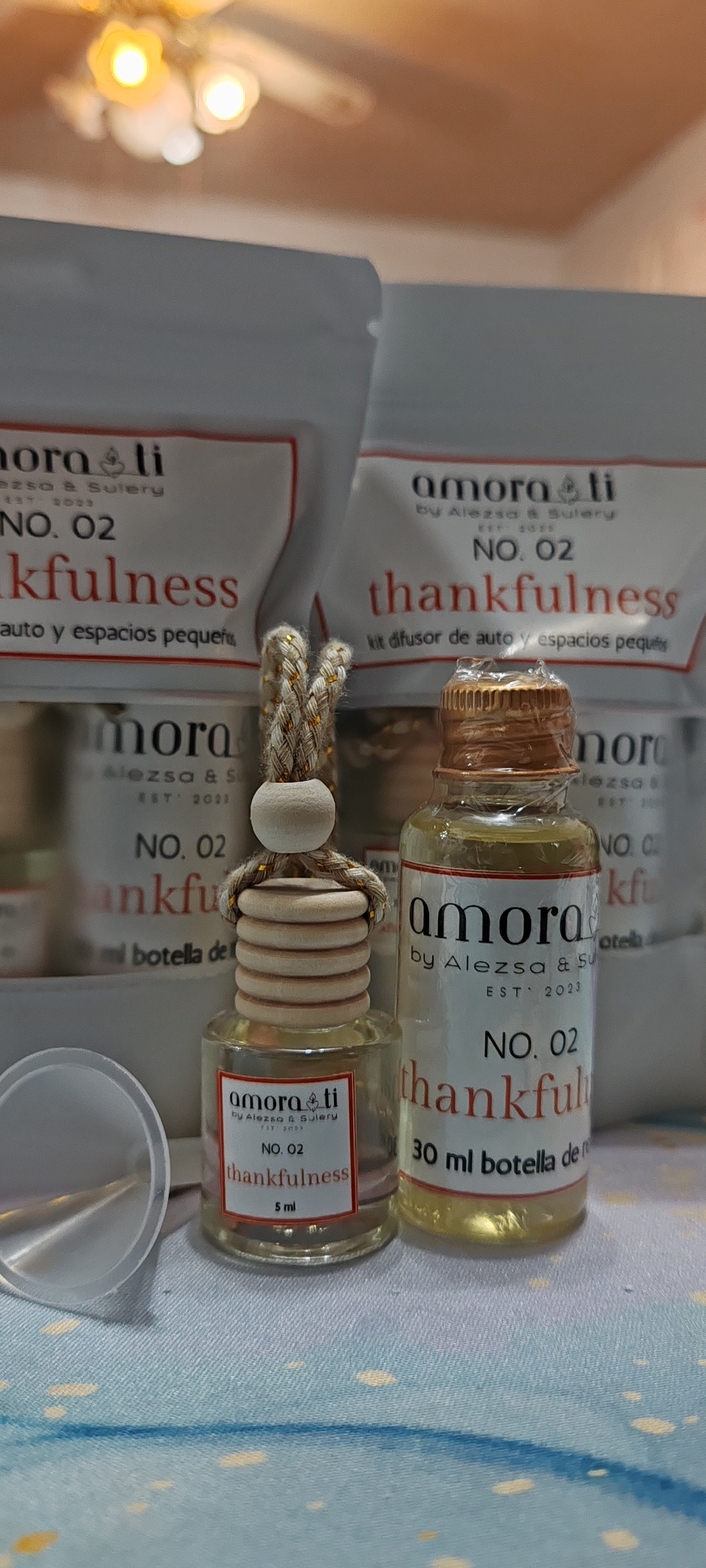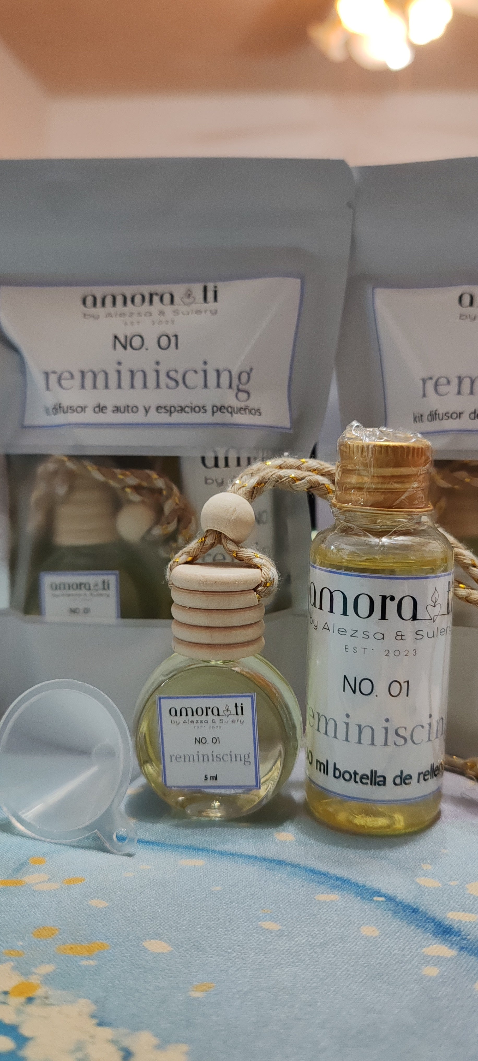El kit contiene: 1 botellita difusora con colgante de 5ml., 1 botellita de 30 ml. para relleno de tu difusor, y 1 un mini-embudo.